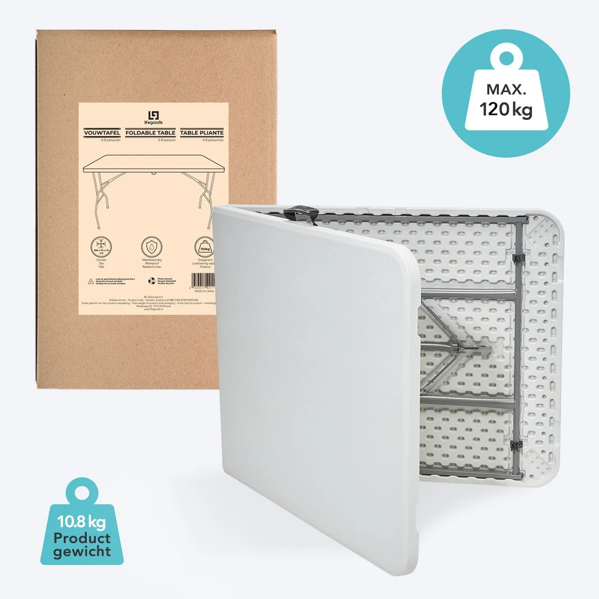 LifeGoods Klaptafel – Inklapbaar – 70x180cm – Verstelbare Vouwtafel – Weerbestendig – Wit