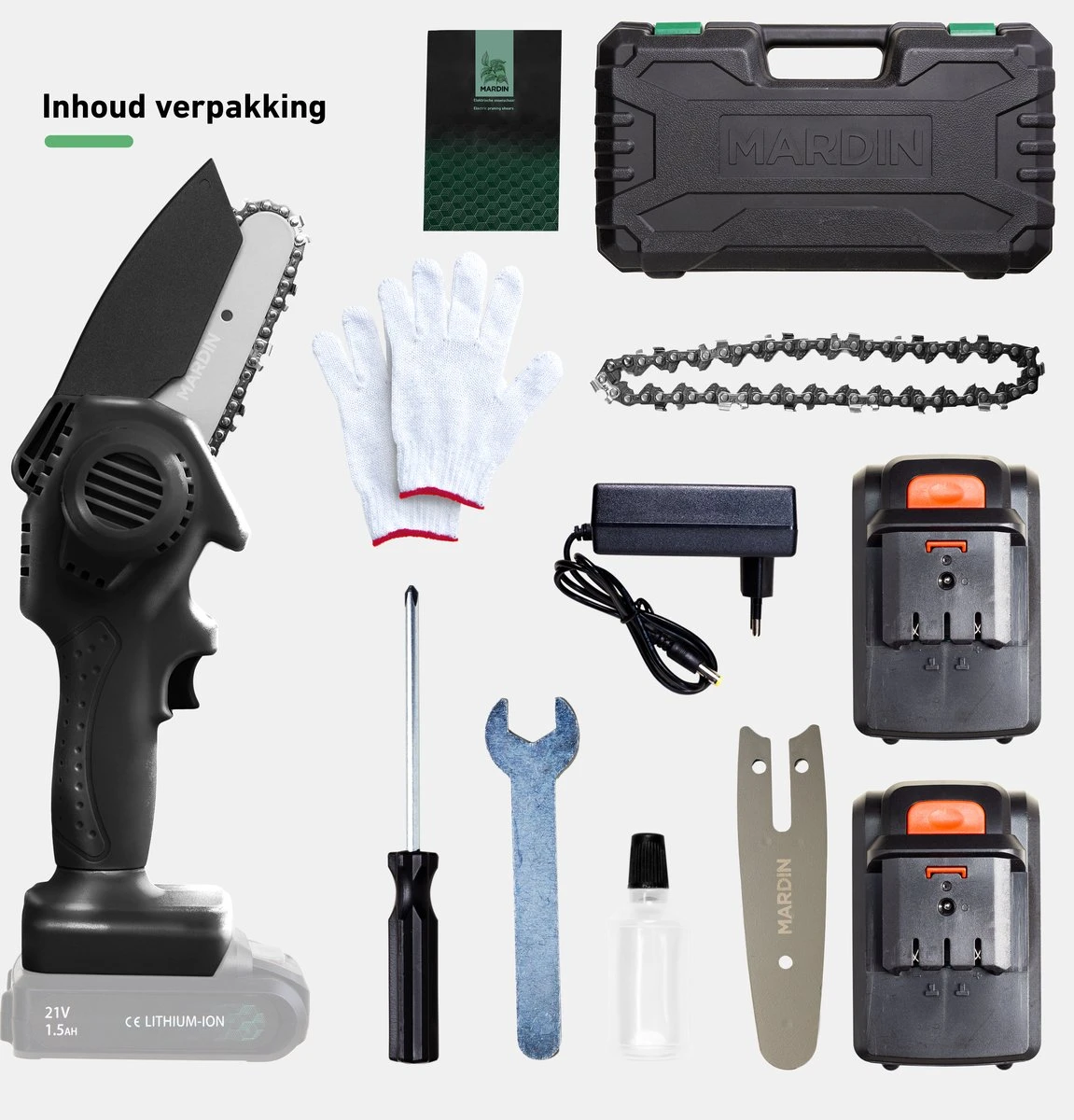 Mardin Mini Kettingzaag – Snoeizaag – Kettingzaag – Kettingzaag Electrisch Met 2 Accu – Inclusief Koffer – 1 Extra Accu – Zwart
